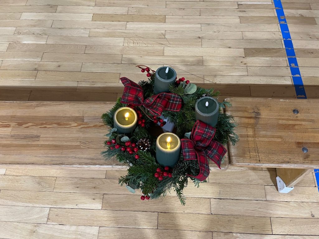 Auch am zweiten Montag im Advent setzte sich die Schulgemeinschaft in der Turnhalle zusammen, um weihnachtliche Klänge zu hören und den Darbietungen von Mitschülern, Mitschülerinnen und dem Kollegium zu folgen.
