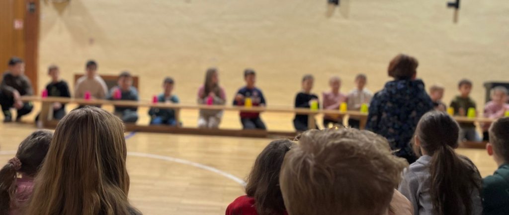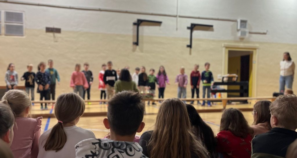 Die 2a bot einen Weihnachts-Rap, die 3a zeigte eine Becher-Percussion, und die Lehrerinnen und Lehrer trugen eine aktuelle Version von „Morgen Kinder wird’s was geben…“ vor.