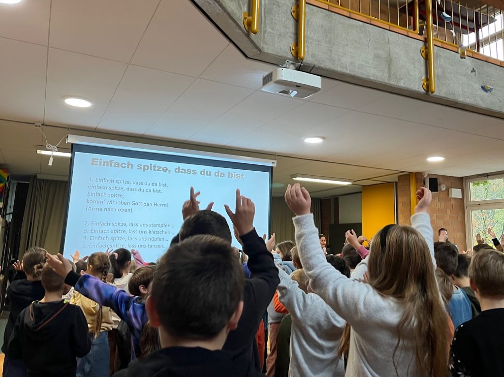 Kurz vor den Herbstferien versammelte sich die Schulgemeinde noch einmal im Forum, um ein Erntedank-Fest zu feiern.